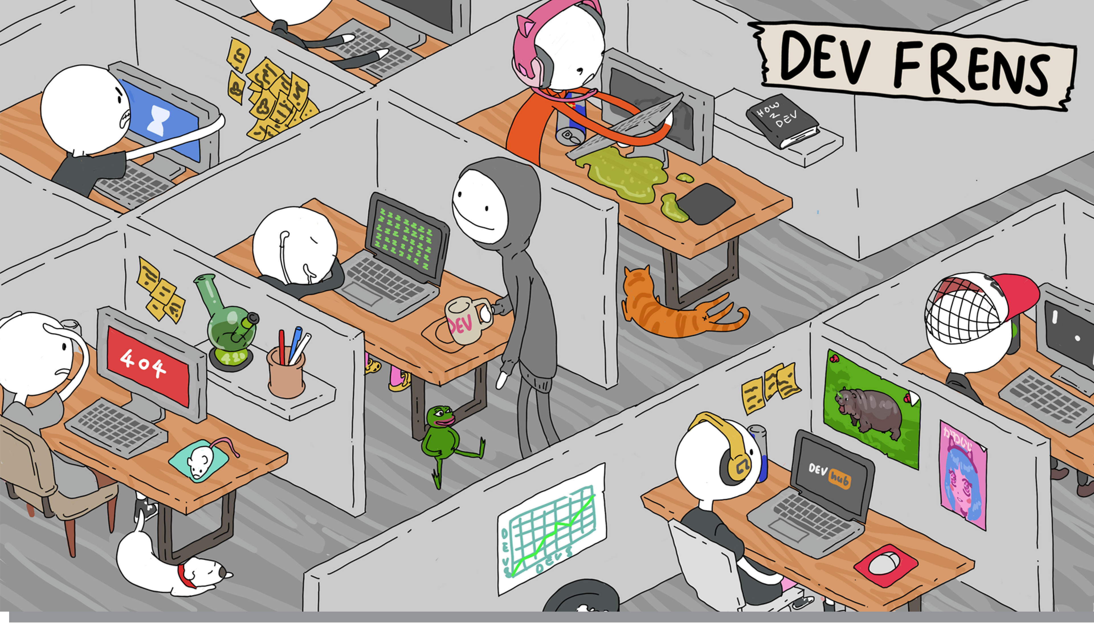 DEV FRENS IS A COLLECTION OF NFTs FOR DEVS, BUILDERS, AND CREATIVES IN THE WEB3 SPACE. THEY DEPLOY FIRST AND TEST IN PRODUCTION. EACH NFT IS A BADGE OF HONOR AND MEANS YOU ARE A TRUE DEV FREN AND ALLY OF THE DEV COMMUNITY.